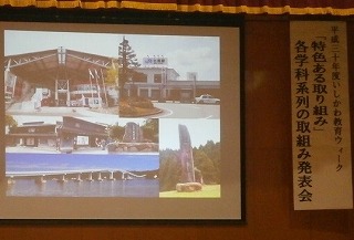 電子機械科、演劇科、総合経営学科農業系列、総合経営学科商業系列の順で、現在3年生が取り組んでいる活動について約1時間の中間報告がありました。同じ学び舎で学習する仲間でありながら、学科系列が違うと、お互いの学んでいることがわからないものです。それぞれの発表生徒はスライドを用いて分かりやすく活動状況をまとめ、相互理解を深めた活動になりました。