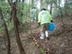 演習林に入るとお目当ては、「アカモミタケ(カマツミミとも)」というキノコです。モミ系の木の周辺に生えているキノコで、全体にオレンジ色をしています。お味噌汁や炊き込みご飯の具として食べます。今年はたくさん出ているようで、注意深く探すと「ここにも、あそこにも」と見つけることができました。