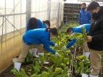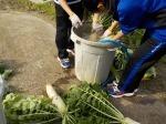 3学期最初の実習では、かつお菜と小カブの収穫を行いました。
