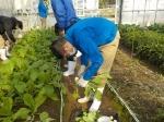 草花のビニールハウスでは、一足早く対応していました。生徒を連れてハウス内を観察させます。今までとの違いを聞くと、「竹の支柱がしてある」とすぐに気づきました。支柱をする理由を聞くと、しばらくして「雪の重さでハウスがつぶれないようにする」と答えてくれました。