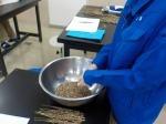 分げつ(枝分かれ)した茎の数や穂の数、穂についたモミの数を調査しました。その後は、穂から籾をすべて外し、水の中に入れて充実した籾と未熟な籾を選別し、さらに籾摺り・精米の工程があります。