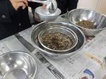 2年生は実験用のポットに一人一本の苗を植え、イネの栽培を行ってきました。11月に収穫・乾燥させ、現在イネの収量を調査しています。