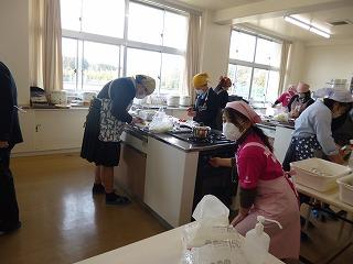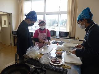 献立は、「ブリのオイスター照り焼き、野菜たっぷりみそ汁、白ご飯、みかん」でした。野菜は皮をむかずに調理したり、魚に塩を振って、水分をふき取るなど、ていねいに指導していただきながら、楽しく調理をすることができました。みそ汁ができあがったら塩分濃度を測定し、みそ汁の味の濃さと塩分濃度を確認しました。