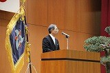 続いて川内学校長から①挨拶は目を合わせて、②5分の朝学習を日課に入れたこと、③今を大切にすること、の3点についての講話がありました。言われたことをただやるのではなく、自分で考え、なぜやるのかの理由を考えて行動すること、たった5分であるがその朝学習の質を高めること、そうすることが学習だけでなく部活動の結果に連結する、そして現在は「育てられている」立場であるが、高校時代は将来「育て、面倒を見る」側になって人生を歩む、節目の時期のゴール地点にかかっていると例えられて、生徒たちのこの1年間の健闘を期待して、講話が終了しました。