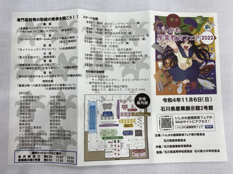 本日11/6いしかわ産業教育フェアが産業展示館2号館で開催されます。