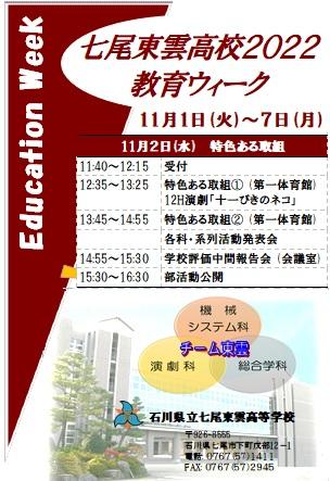 11月1日(火)から「いしかわ教育ウィーク」が始まり、2日(水)午後に第1体育館を会場にして本校の「特色ある取組」がありました。