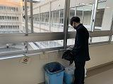 窓拭きを通じて「窓はけっこう汚れている」や「クモの巣もあった」など、普段当たり前に見ているところでも汚れが溜まっていることに気付けました。今後も小さな活動を積み重ね、自ら進んで行動できる人材になってほしいと思います。次回は12月にボランティア委員2年生が2階の窓拭きを行います。