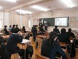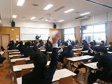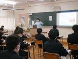 学校長による講師紹介に続いて、宮﨑氏からは、ネット上においての身近なトラブル、なりすまし、気づかぬうちに加害者や被害者になることを例に、また本田氏からは、ネット上でのいじめ、ネット上での相談相手の事件を例にして話がありました。「インターネット上の情報だけで相手の人物像を判断してしまう」ことは大変危険であり、困った時や困った人を見た時には、勇気をもって周囲の身近な大人や公共機関に相談することが大切であると、両氏ともが共通して締めくり、教室は終了しました。