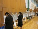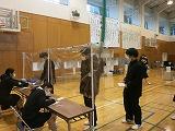 生徒は「加能はなこ候補」と「石川たいち候補」の2人の選挙公約を確認後、一人ずつ投票場へ赴き、投票所入場券を投票用紙に引き換え、候補者1人の氏名を書いて投票箱へ投函しました。
