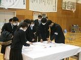 昼休みの時間帯に、まず、生徒たちが避難指示の放送に従って自分のクラスへ避難しました。次に担任・副担任が教室で生徒の避難状況を確認後、担任が本部となっている職員室で人数等の点呼を報告しました。また、教職員も全員が本部で点呼を受け、生徒、職員の無事を確認して避難訓練を終了しました。