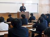 【終業式 教室の様子】 【終業式 学校長挨拶(大講義室)】