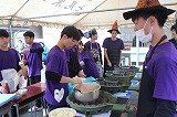 第2体育館を会場に9時から生徒会企画、そして9時30分からは一般開放とし、ダンスコンクール決勝がありました。屋外ステージでは吹奏楽部やダンス部の発表や各種発表、その周辺や教室では各クラス模擬店、PTAによる模擬店も出て、長蛇の列が見られました。また今年は3年生有志が奉燈を作成し、前庭を引いて歩きました。