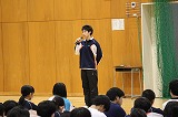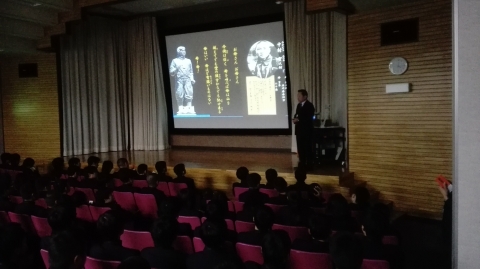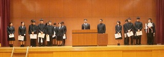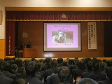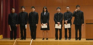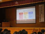 9月の就職試験、10月の学校祭、11月の新人大会、12月の商業を学ぶ生徒の国際感覚事業育成事業と、各月の大きな行事を取り上げて、生徒たちの頑張りが実を結んだこと、ボランティア活動を通して地元に貢献していることが話されました。自分に自信をもち、計画を立て、考えながら行動し、色々なことに挑戦してほしいとありました。