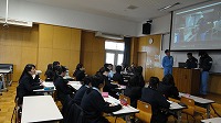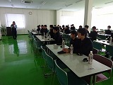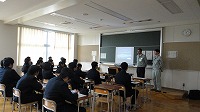 などを目的としており、能登地域活性化人材確保推進実行委員会が主催者となっています。2年生全員が8会場のうち2会場を選びました。1社あたり約10分の持ち時間の中で、仕事内容、仕事を通して学んだこと、社会人として必要なこと、地元で働くことの魅力などについて語っていただきました。その後質疑応答の時間をもつ形式で行われました。話を聞く生徒はメモを取りながら真剣に耳を傾け、大変有意義な時間となりました。