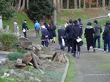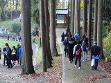 11月24日(土)、総合経営学科3年生13名が12時50分に学校を出発し、集合場所である山の寺駐車場へ向かいました。13時30分に荒巻学校長から挨拶があり、その後3班に分かれ、今回のガイドがスタートしました。