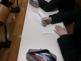 初めに石川県や七尾市選挙管理委員会の方から選挙についての講義や投票についての説明がありました。その後、「石川県知事模擬選挙」として大講義室で再現された投票場で2年生全員が投票を行いました。投票事務従事者として一部生徒が受付係や投票管理者等の役割も務めました。「加賀やすこ候補」「能登めぐみ候補」「石川たいち候補」の3人の選挙公報を見ながら選挙公約を聞き、その後投票所入場券を持ってそれを投票用紙と引き換え、候補者1人の氏名を書いて投票箱へ投函しました。開票した結果、本校では「石川たいち候補」が当選しました。生徒たちは振り返りのアンケートを記入し、約2時間の講座は終了しました。