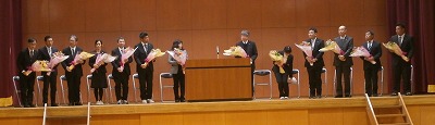 続いて行われた離任式では、荒巻学校長からの退職や異動される13人の先生方の紹介のあと、一人ずつお言葉を頂きました。来校した多くの卒業生、1・2年生、そして私たち教職員にも一言一句が私たちの心に響き、教えを忘れずに過ごしていこうと、心新たにさせて頂きました。新天地での皆様のご健勝とご活躍をお祈りいたします。