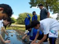 6月4日に朝日小学校の2年生25名とサツマイモの定植体験を行いました。本活動は本校でコロナ渦の年を除き毎年実施しています。最初に紙芝居でサツマイモの苗について紹介を行いました。その後、小学生5人と本校生徒4~5名でグループを作り、定植を行いました。本校生徒には事前に植え方のレクチャーをしてあったので小学生に丁寧に教えながら仲良く定植する姿が見られました。生徒も前の日から「明日楽しみ~」といった声も聞こえ、終わった後に感想を聞くと「楽しかった~次はいつ?」などと次の定植体験を楽しみにしている様子でした。朝日小学校の皆さんも笑顔で帰っていかれたのでよかったです。次は9月の収穫体験で再会できるのを楽しみにしています。