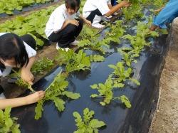 「先生、どれ取っていいがん?」と聞く生徒に、ポイントは①比べてみて生育の小さいもの、②葉が虫に食べられているものを選んで引き抜くようにアドバイスしました。