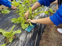 1畝に160ポットの苗を定植します。最初はぎこちなかった手つきも数をこなすうちに慣れ、要領もよくなってきました。この間の暑さに加え、立ったりしゃがんだりの繰り返しで作業は大変です。