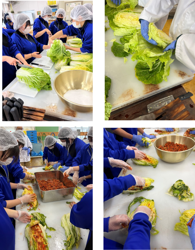 科目「農業と環境」と「食品製造」の時間を用いてキムチ製造を行いました。例年1年生の「農業と環境」で行っていますが、昨年度は能登半島地震による休校でできなかったことから2年生も同時に行うことにしました。