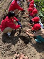 新型コロナウイルスの影響により実施が見送りとなっていた幼稚園との交流活動プログラムの一つ「サツマイモ収穫体験」を4年ぶりに実施しました。