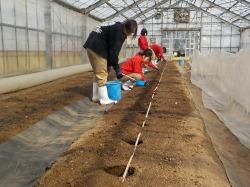 この後、わらのマルチをしたり成長に合わせてネットを張るなどの管理をしながら、5月中旬ごろの収穫を目指します。