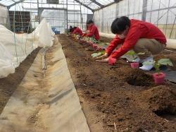 新年度最初の実習は、キュウリの苗を栽培ハウスに定植しました。