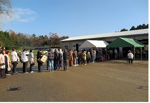 野菜コーナーでは、白菜や大根を求めて長蛇の列ができました。