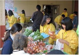 総合経営学科3年生の農業系、商業系の生徒が、発送する品物の選別から袋詰め、梱包までを行います。