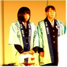 表彰式に望む山崎君(奥)と藤井君(前) 念願の最優秀を受賞
