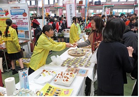 金沢の産業展示館3号館にて、本校の総合経営学科の農業系列の生徒8名が農産物の物品の販売を行いました。館内には、たくさんのお客さんが来られ、本校で栽培・加工した品(味噌、クッキー、マドレーヌ、ジャム、乾燥シイタケ、トマト、タマネギ、シクラメン)を販売しました。館内は大盛況でした。