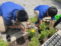 学校周辺美化活動~徳田駅の花壇に花を定植~(農業系列)