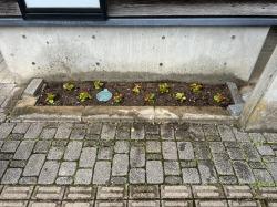 最後にたっぷり水をやり、花壇周辺の掃き掃除をして定植終了です。