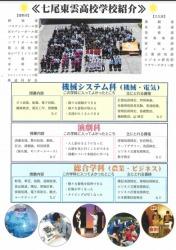 2つ目は、学校紹介ポスターです。来ていただいたお客様に、より本校のことを知ってもらえるように、ポスターを新たに作成しました。作成するにあたって、在校生向けに学科ごとにアンケートを実施し、情報を収集し、自分たちの手で1つのポスターにまとめました。