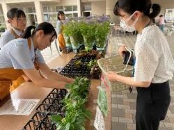 総合学科農業系列生徒が育てたペンタスやユウギリソウなどの花苗・花鉢3種類を、ビジネス系列生徒20名が接客や会計を担当し販売しました。生徒たちは初めての販売実習で不慣れな部分もありましたが、天候にも恵まれ多くの方々に来店いただきました。  販売実習を終えた生徒たちからは、「人とかかわるということがより好きになった。」、「とても楽しかった。初めてのことばかりで不安だったけどよくできたと思う。」などの声が聞こえてきました。