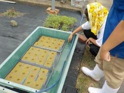 この後2週間ほど液肥を与えながら生育を促し、8月9日に水耕栽培ハウスに本定植する予定です。