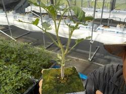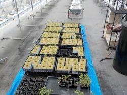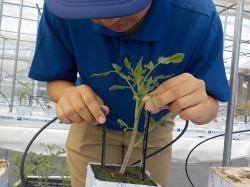 8月9日、仮定植して2週間たったトマトの苗を水耕ハウスに本定植しました。