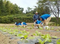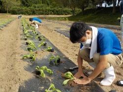2学期に入り、秋冬野菜の播種や定植が目白押し。9月第2週は、ハクサイの定植を行いました。