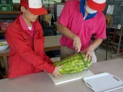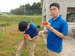 定植後は農場で栽培したスイカを頬張りました。冷たくておいしかったぁ~。