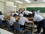 8時50分からの開講式では、学校長挨拶、堀井生徒会長の歓迎挨拶があり、生徒会執行部がパワーポイントを用いて本校の学校概要説明を行いました。その後中学生は各教室に移動し、工業、演劇、農業、商業の4系列に分かれて授業を2時間受け、アンケートを記入して閉講式となりました。