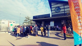 11月9日(土)午前9時から中能登町の「道の駅織姫の里なかのと」を会場に、収穫祭が実施されました。本校で収穫した大根・白菜・ネギなどの野菜や、自家製の味噌やジャムなどを販売するもので、シクラメンや寄せ植えの販売もありました。
