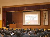 電子機械科、演劇科、総合経営学科農業系列、総合経営学科商業系列の順で、3年生が取り組んでいる活動内容についての報告を約1時間かけて行いました。同じ学び舎で学習する仲間でありながら、学科系列が違うと、お互いの学んでいることがわからないものです。発表生徒はスライドや動画を使いながら分かりやすく活動状況をまとめ、聞いている生徒たちは相互理解を深めることができました。