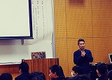 12月6日(金)の5限目に、総合経営学科の1~3年生140名を対象にして、「元氣創生塾」講演会がありました。これは6月に公益財団法人 北陸電力教育振興財団会が主催する「元氣創生塾」講演会に申込み、受諾をいただいてこの度実現したものです。講師は岡本俊英氏(株式会社VISCUM 代表取締役社長)で、「好きなものを通して巡り合った人との出会い」が演題でした。