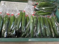 収穫したキュウリは軸(果梗)を短く切りそろえ、花がらを摘み袋詰めします。計量・袋に入れる時の向き・袋の口留めなどのポイントに注意しながら作業に取り組みました。