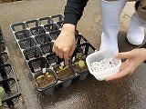 5月11日、ナス、ピーマンを中心に一人あたり2種類の野菜を播種し、それから一か月。発芽したものをビニールポットへ移植する“鉢上げ”作業を実習しました。合わせて緩効性の固形肥料を与え6月いっぱい育苗します。7月初めには圃場に定植する予定です。