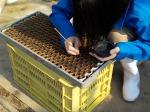 チェーンポットと呼ばれる苗箱に種を播きます。小さな部屋に分かれていて、一箱264部屋あります。そこに一粒ずつ種を播いていきました。