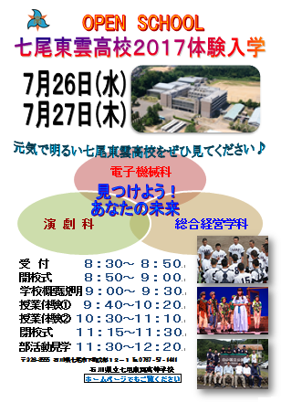 7月26日(水)と27日(木)の2日間、中学生を対象とした体験入学がありました。