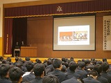 電子機械科、演劇科、総合経営学科農業系列、総合経営学科商業系列の順で、3年生が取り組んでいる活動内容についての報告を約1時間かけて行いました。同じ学び舎で学習する仲間でありながら、学科系列が違うと、お互いの学んでいることがわからないものです。発表生徒はスライドや動画を使いながら分かりやすく活動状況をまとめ、聞いている生徒たちは相互理解を深めることができました。