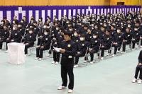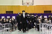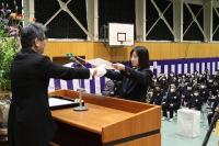 3月4日(金)の10時から、第14回卒業証書授与式がありました。新型コロナウィルス感染症拡大防止のために臨時休校の措置がなされている中、卒業生と保護者、教職員のみの参加で実施されました。ほとんどがマスクを着用し、時間短縮が図られての進行でしたが、厳粛な雰囲気の中、滞りなく挙行され、167人の保護者と一緒に卒業生142名を祝福し、巣立ちを見送りました。